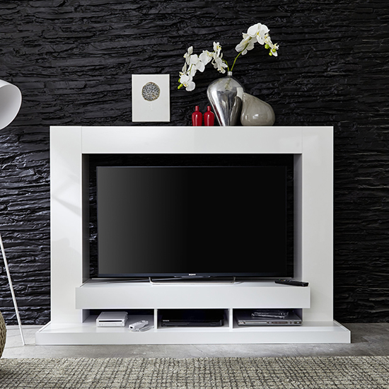 Stamford Entertainment Unit In White Gloss Fronts With Shelving